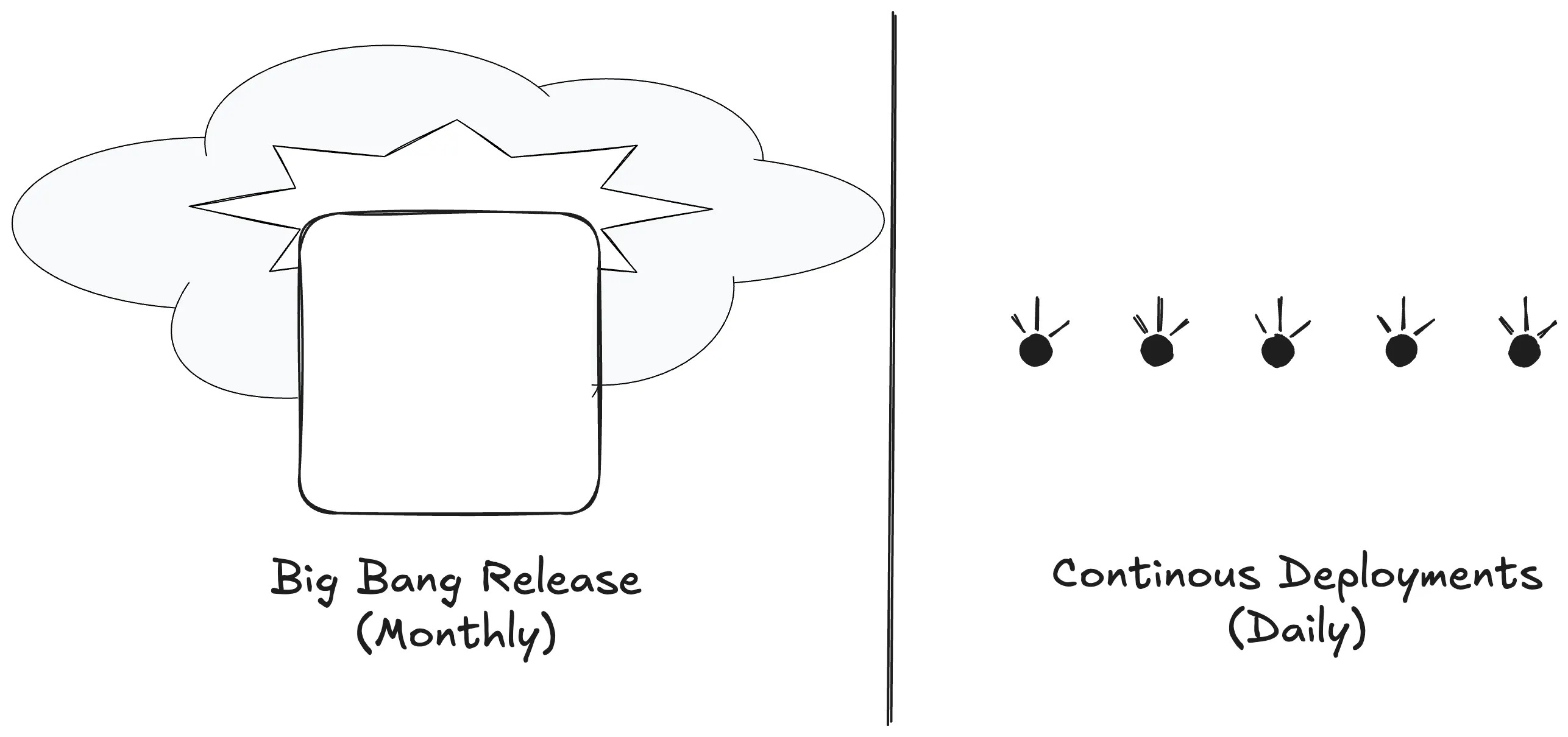 They are actually witnessing the accumulation of “deployment debt“, a massive batch of unverified changes that will eventually explode in a “Big Bang“ release.