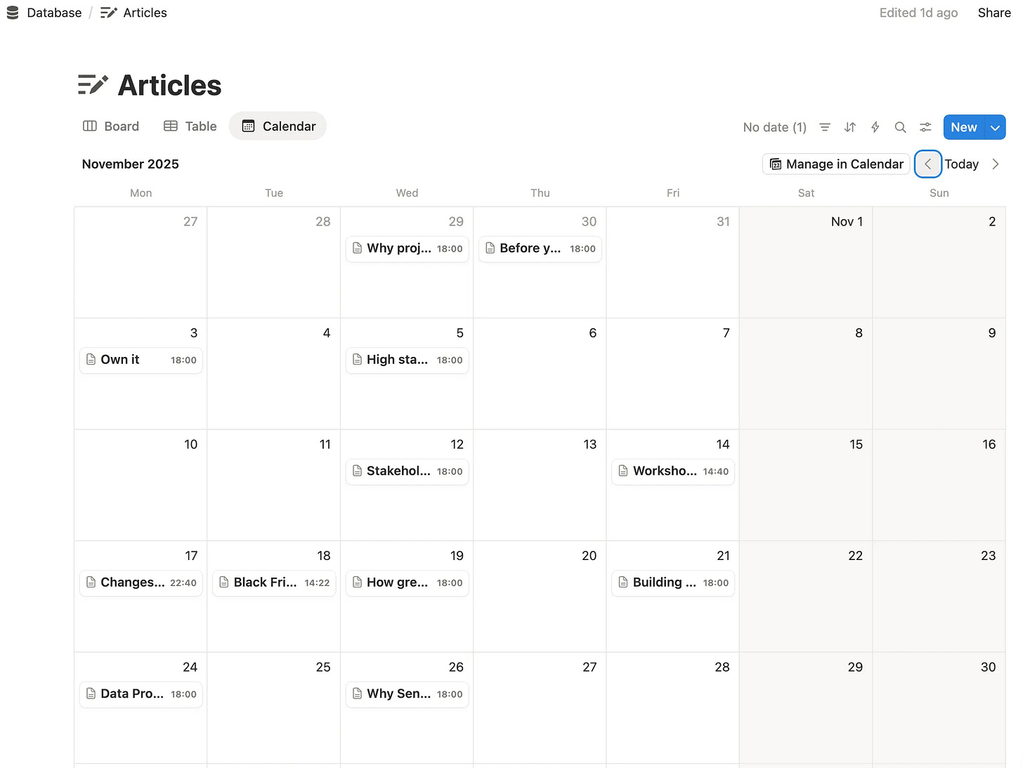 This is my idea inbox. Friction, observations, half-formed thoughts, and patterns from work land here first. Most of them never turn into articles, and that’s fine. As you can guess, I use this for much more that content.