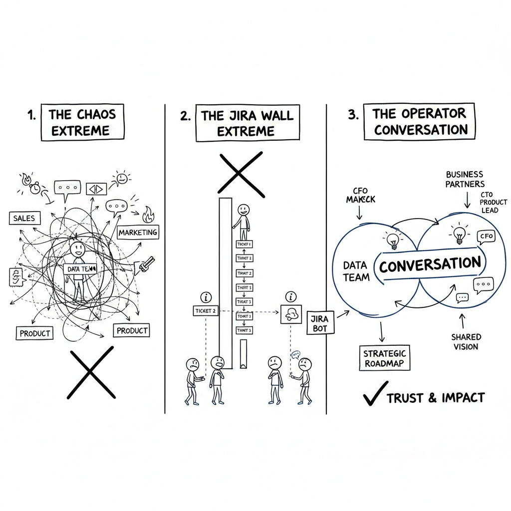 Most data teams fall into one of two extremes. They either live in pure chaos or they hide behind a wall of tickets.