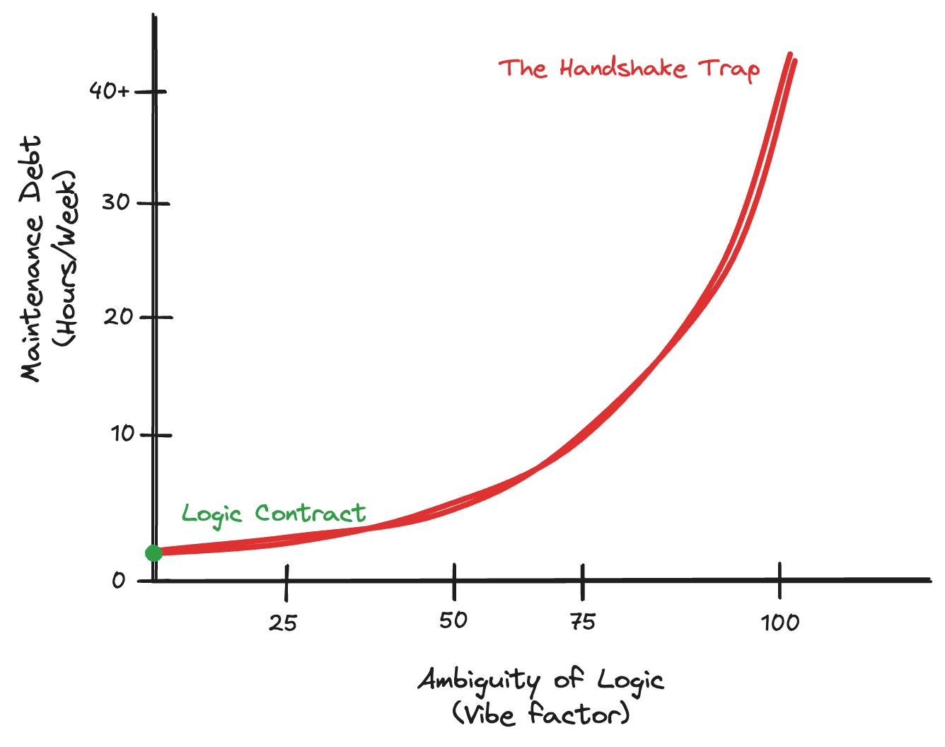 If you build on handshakes, you’re building on sand. When that stakeholder leaves, the handshake vanishes, the logic collapses, and you’re left holding a pile of spaghetti code that an AI could have written better anyway. But if you build a Logic Contract, the project survives the person. The logic remains undeniable because it’s no longer a “feeling“, but a requirement.