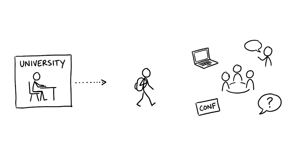 The people who figure this out early have an unfair advantage. They show up at conferences while still in their second year. They build side projects that prove curiosity, not mastery. They surround themselves with people who are ahead of them and ask questions until the vocabulary clicks.